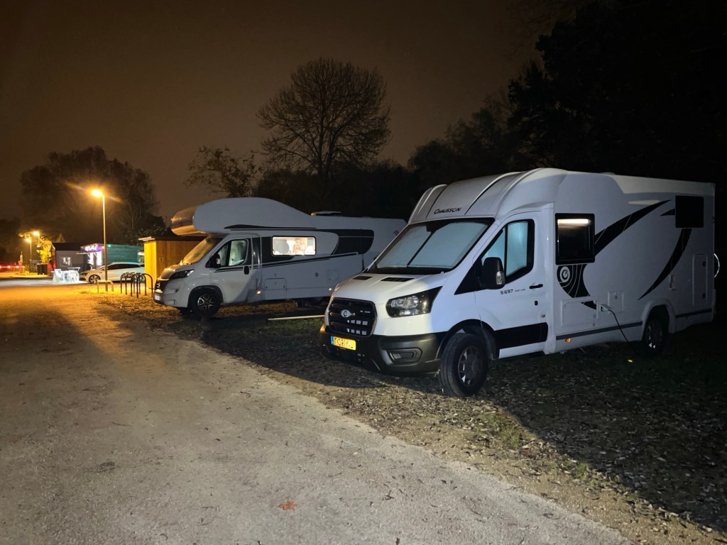 We reden vandaag zo’n 700 km. Kwamen in het donker aan en TomTom leidde ons naar de achterkant van de Camperplaats , waar je niet naar binnen kunt.