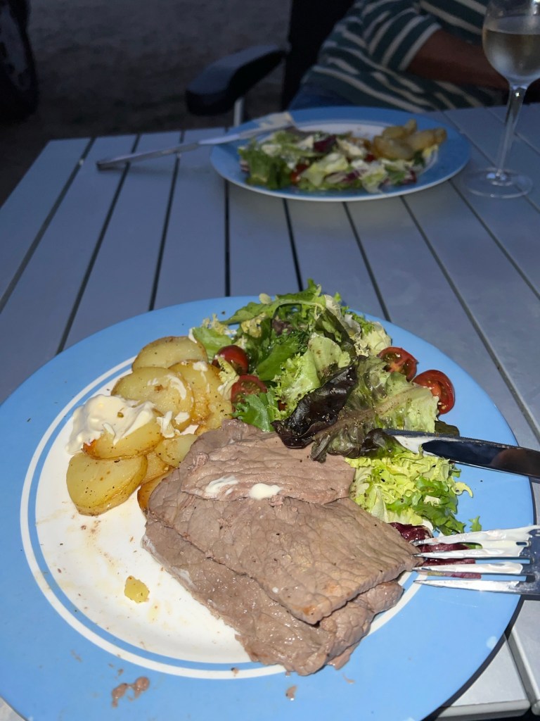 Het werd tijd voor een borrel bij de camper. C ging nog een paar baantjes zwemmen in het ijskoude zwembad. Ze was niet eens de enige. En terwijl zij zwom genoot ik van een ijskoude cola.