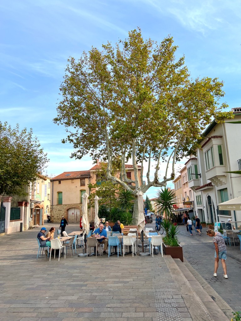 Best wel laat, lui, vertrokken we op de fiets. Vlak langs de haven van Argeles naar ‘Argeles sur Mer’. Geen Collioure, maar toch een grappig plaatsje.