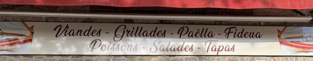 Ze rekenen zich nog tot het Catalaanse deel. Dus veel zaken staan in drie talen. Spaans, Catalaans en Frans. Je ziet dus Paella, Tapas etc naast de meer Franse gerechten.