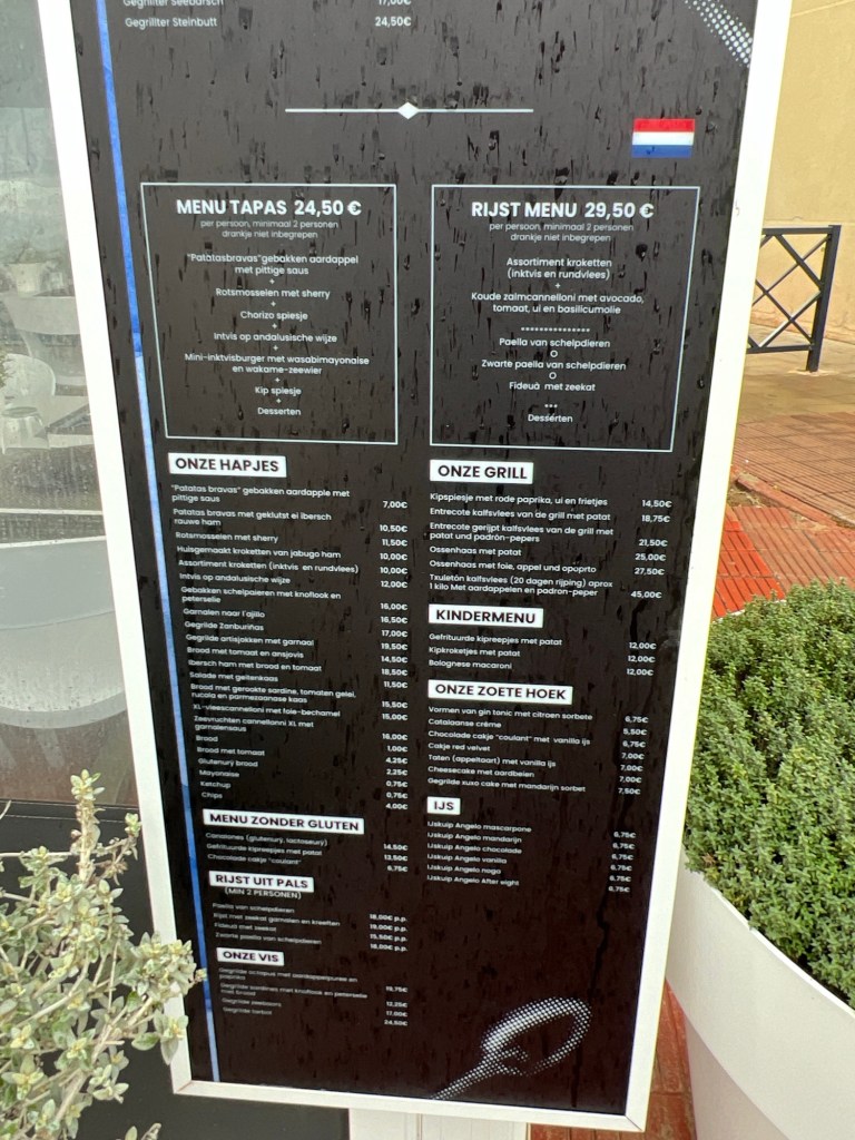 Het stadje, deels winkels dicht, was best wel aardig. Morgen gaan we zeker terug. Soms zelfs restaurants met Nederlands menu 👍
