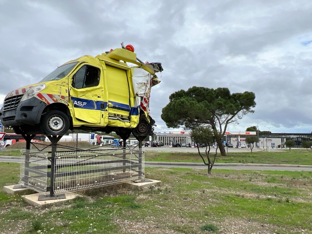 Gister, net na Lyon een parkeerterrein gezien met wel 10 van deze wegwerkers auto wrakken.