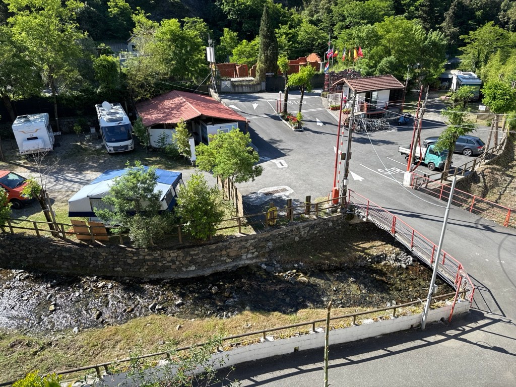 Na een koffiepauze bij de camper was het alweer tijd voor de lunch. Na de lunch maar eens kijken voor een volgende plaats/camping. Dat viel niet mee. De eerste CampingCard camping, op fietsafstand, van Lucca, gaf vrij snel aan, geen plaats. De tweede CC camping hoorde ik niets van. De derde, geen CC, ook al niet. Beetje stress. Voor een camping bij Florence, voor na Lucca, vrij duur, €52 per overnachting, lukte het met de creditcard niet. ANWB VISA confirmatie via app lukte niet. We kunnen woensdag bellen of er plaats is