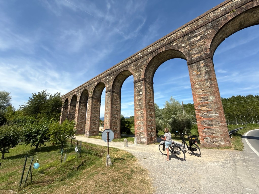 De ‘camping’ liep vrij snel vol, 8 plaatsen. Vlakbij de camping ligt/loopt het Nottolini aquaduct. Een kaarsrecht geheel, zo naar Lucca. Daarnaast loopt en pad waar je grotendeels goed kunt fietsen. Het Aquaduct is in de 19de eeuw gebouwd om Lucca van drinkwater te voorzien vanuit de bergen.