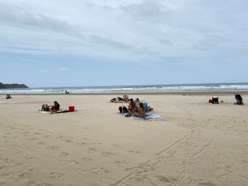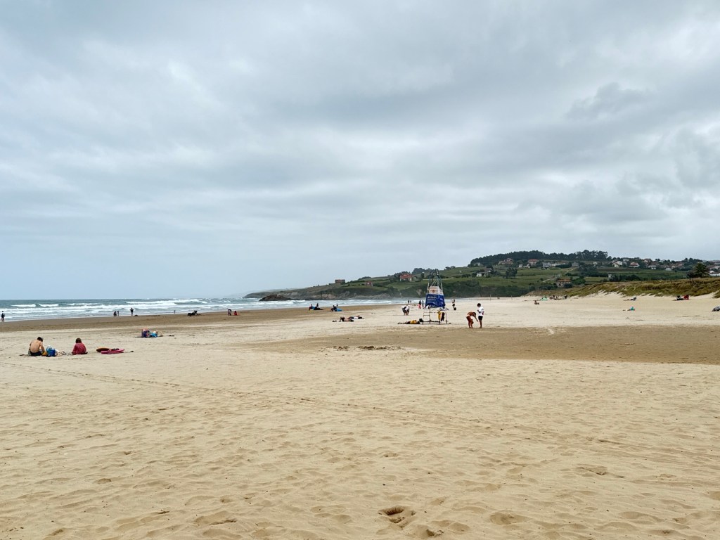 Daarna effe een uurtje relaxen. Potje kaarten. En wandeling naar het strand, 1,5 km, kwartiertje lopen. Het strand van Oyambre is blijkbaar een bekend surf gebied. Zowel voor beginners, cursus/schooljes, als gevorderden. Toen wij er kwamen werd het net wat frisser en begon iedereen op te ruimen.