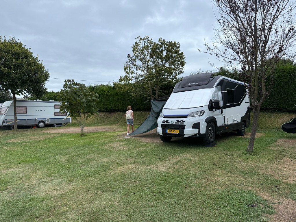 Werd een Aldi, die kwamen we het eerste tegen. Iets na 12en reden we de camping op. Hele ochtend al mooi zonnig. Best wel wind zo nu en dan.