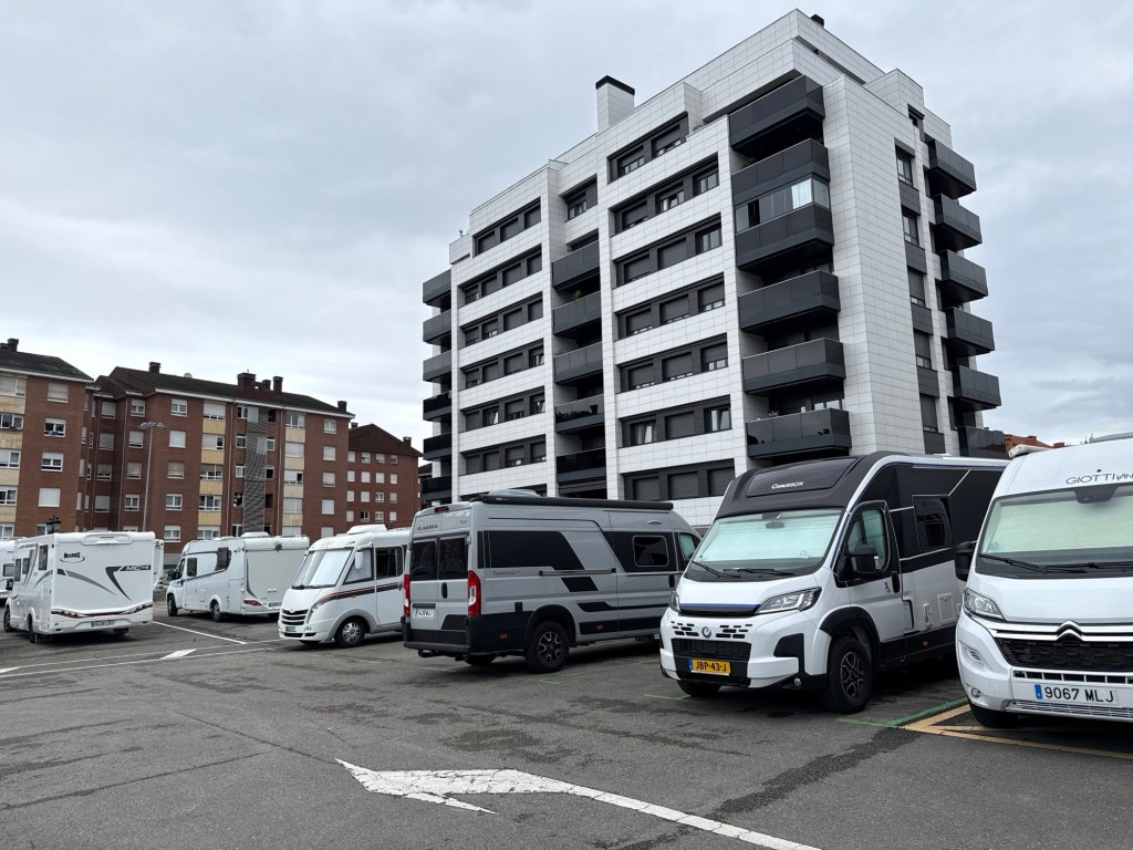 We hebben even rondgelopen. Bushalte op zo’n 200 meter. Met de bus is het dan zo’n 30 minuten naar het centrum. Lopend dik een uur. Morgen nemen we de bus. Morgenmiddag rijden we naar Gijon.