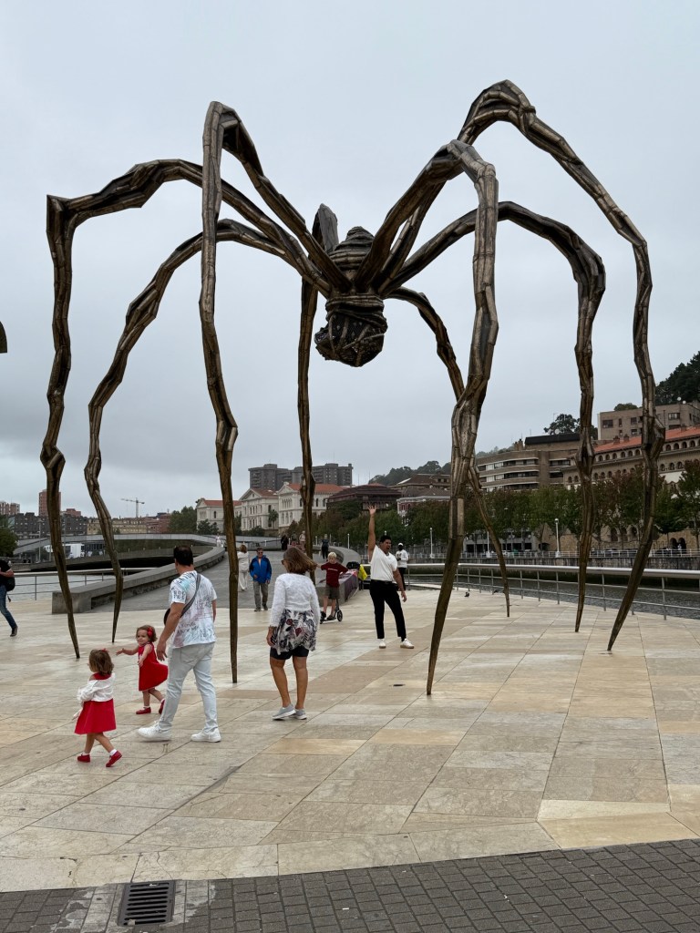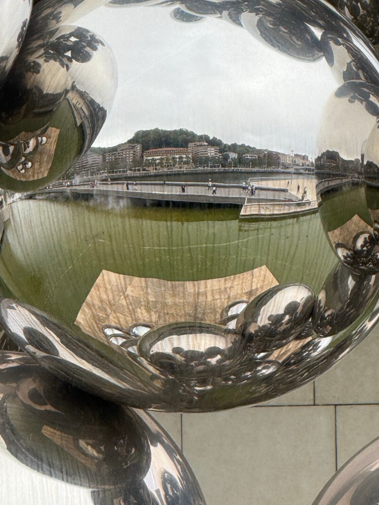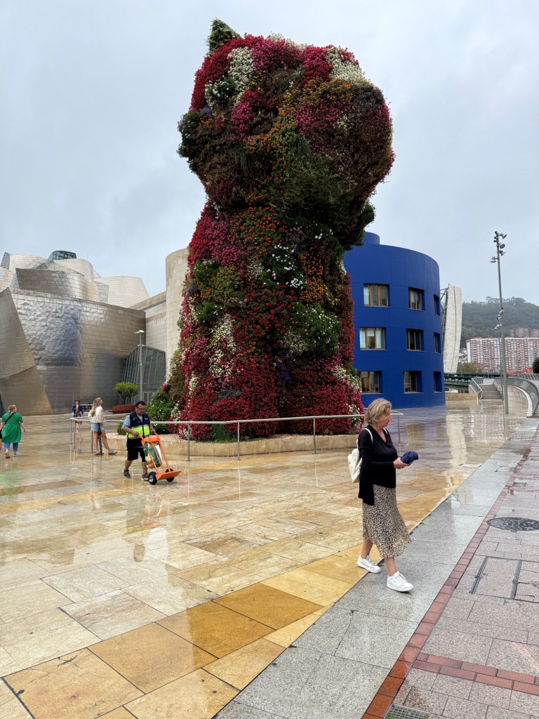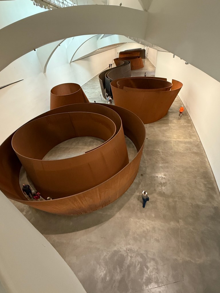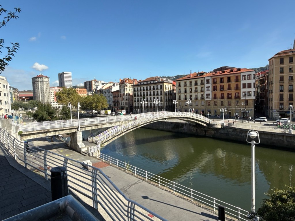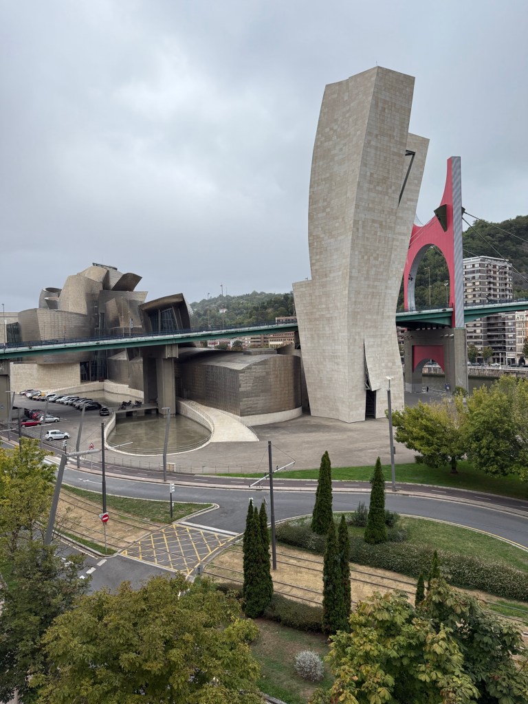 Na deze lunch liepen we zigzaggend, ook weer terug over de rivier, naar het Guggenheim museum.