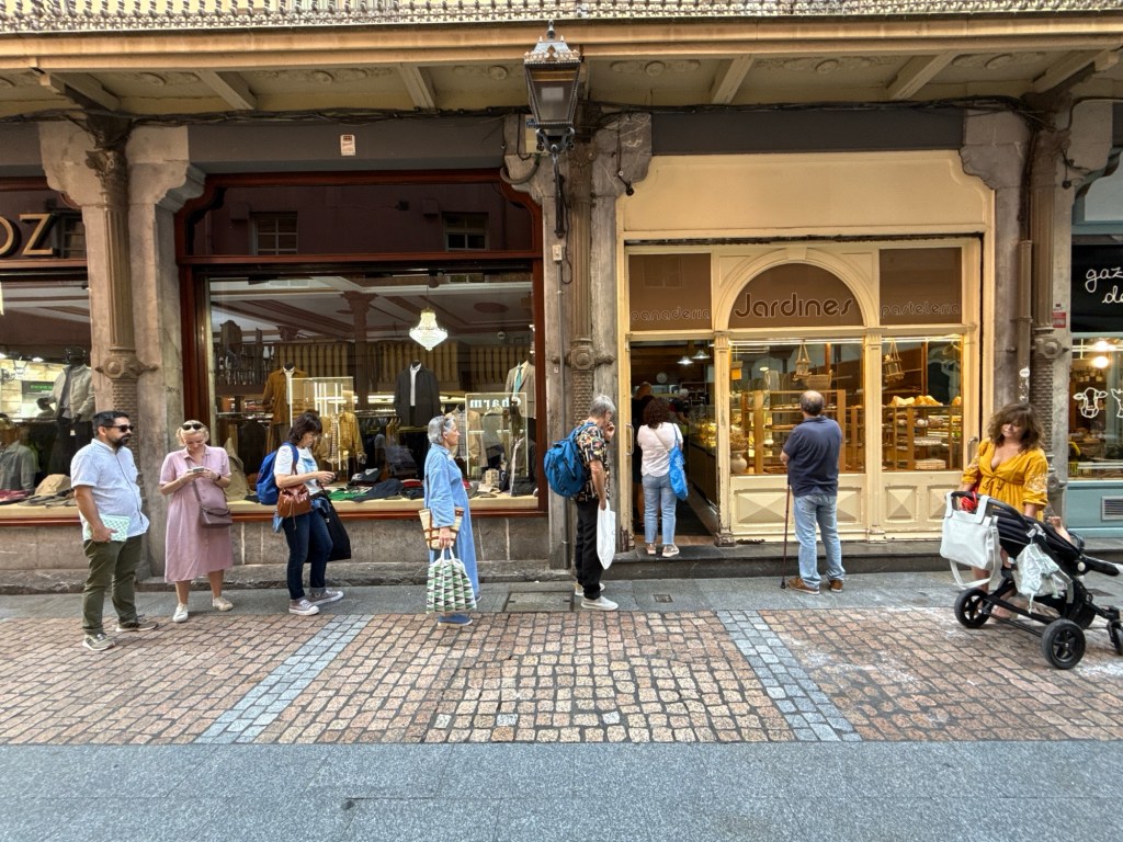We vermaakten ons prima. Zo rond half één begon de pintxos ons toch wel in de ogen te steken. Na een koffie stop, waar de pintxos ook al zo lekker er uit zag, ondernamen we stappen om te lunchen.