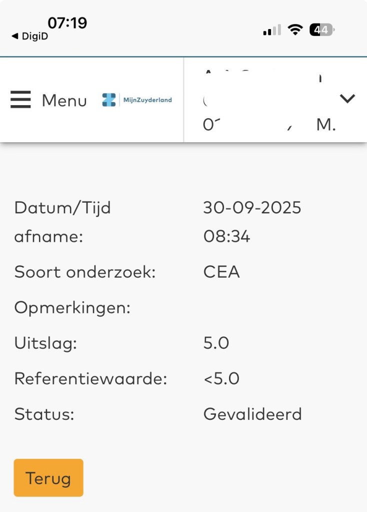 Eerder deze week bloed laten checken op CEA. De vorige keer was minder met 6.0. De “bovengrens” is 5.0, maar daar zit ik meestal iets boven. Iets is blijkbaar Ok (maar wat is iets😉).