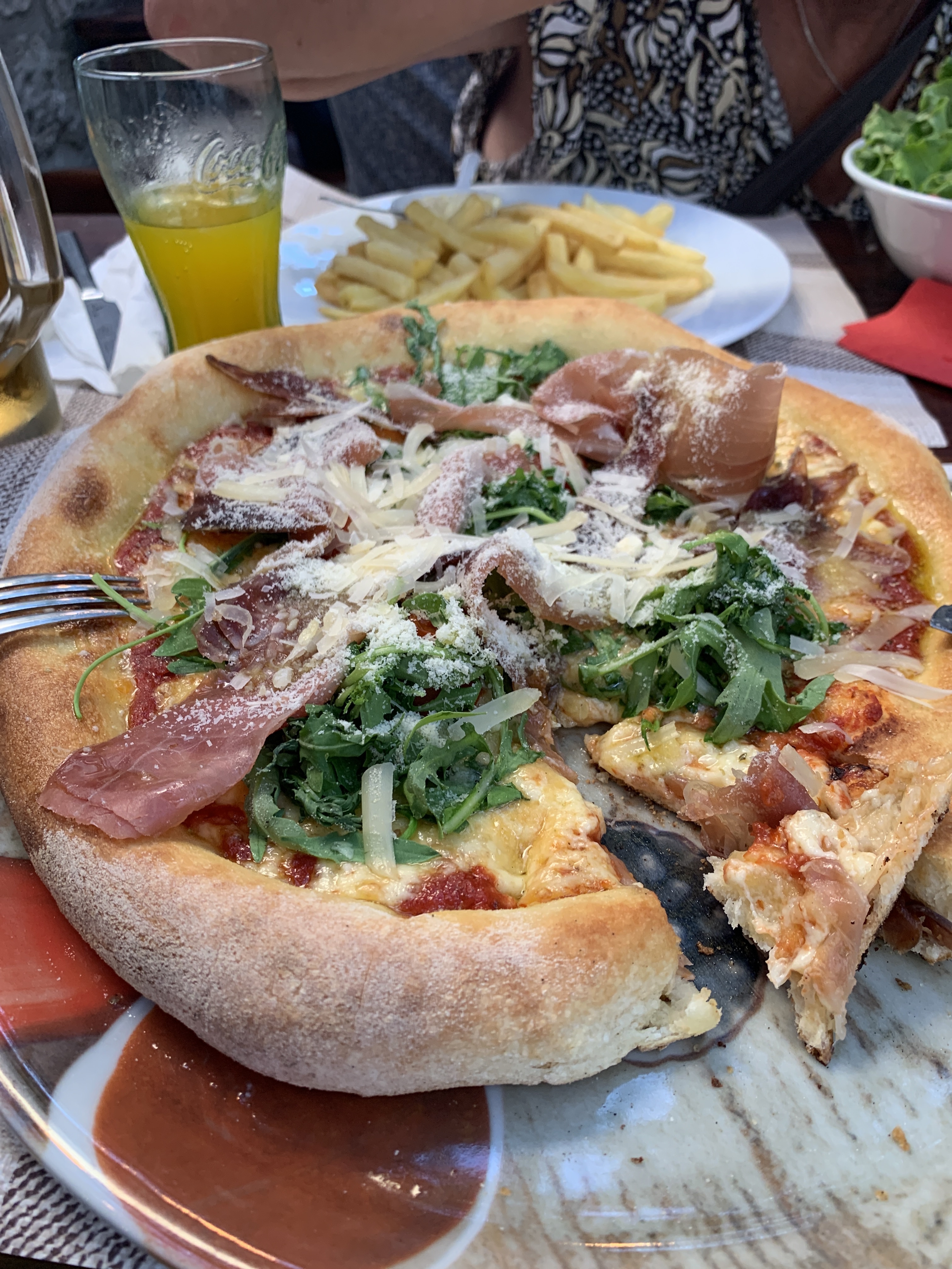 Friet met salade voor C en een pizza voor mij. C had Fanta en ik dus die halve liter bier, die uiteindelijk mijn energie voor de rest van de dag wegspoelde, niet zo erg trouwens, bier was koud lekker en gewenst. De rest hebben jullie al gelezen, dus vanavond weer een blog.