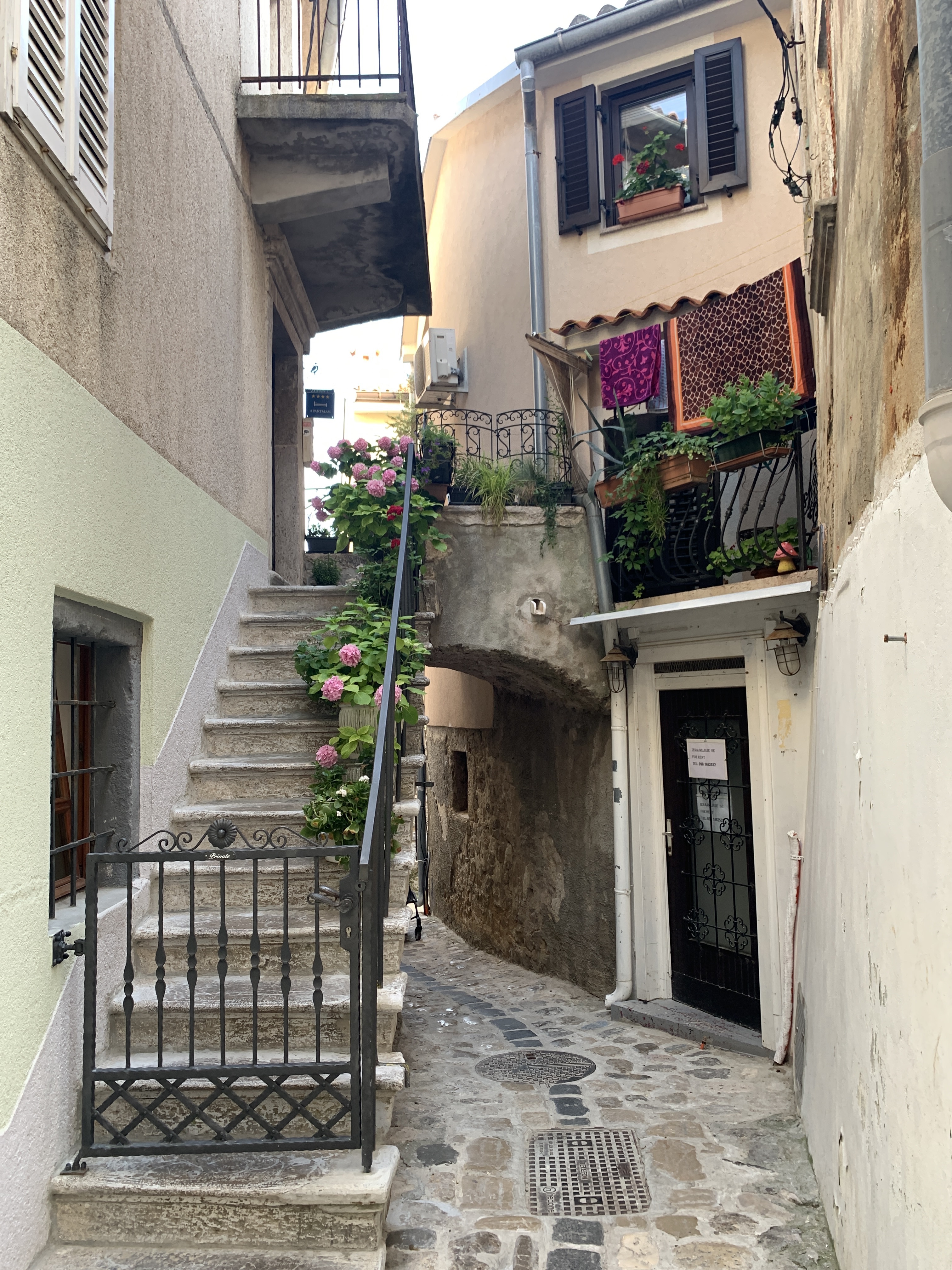 Kwamen toen dit nog tegen over ons dorpje boven. Gelijk door de poort gegaan, wirwar van straatjes, trappen en huizen. Heel apart. Gelukkig niet gemist.