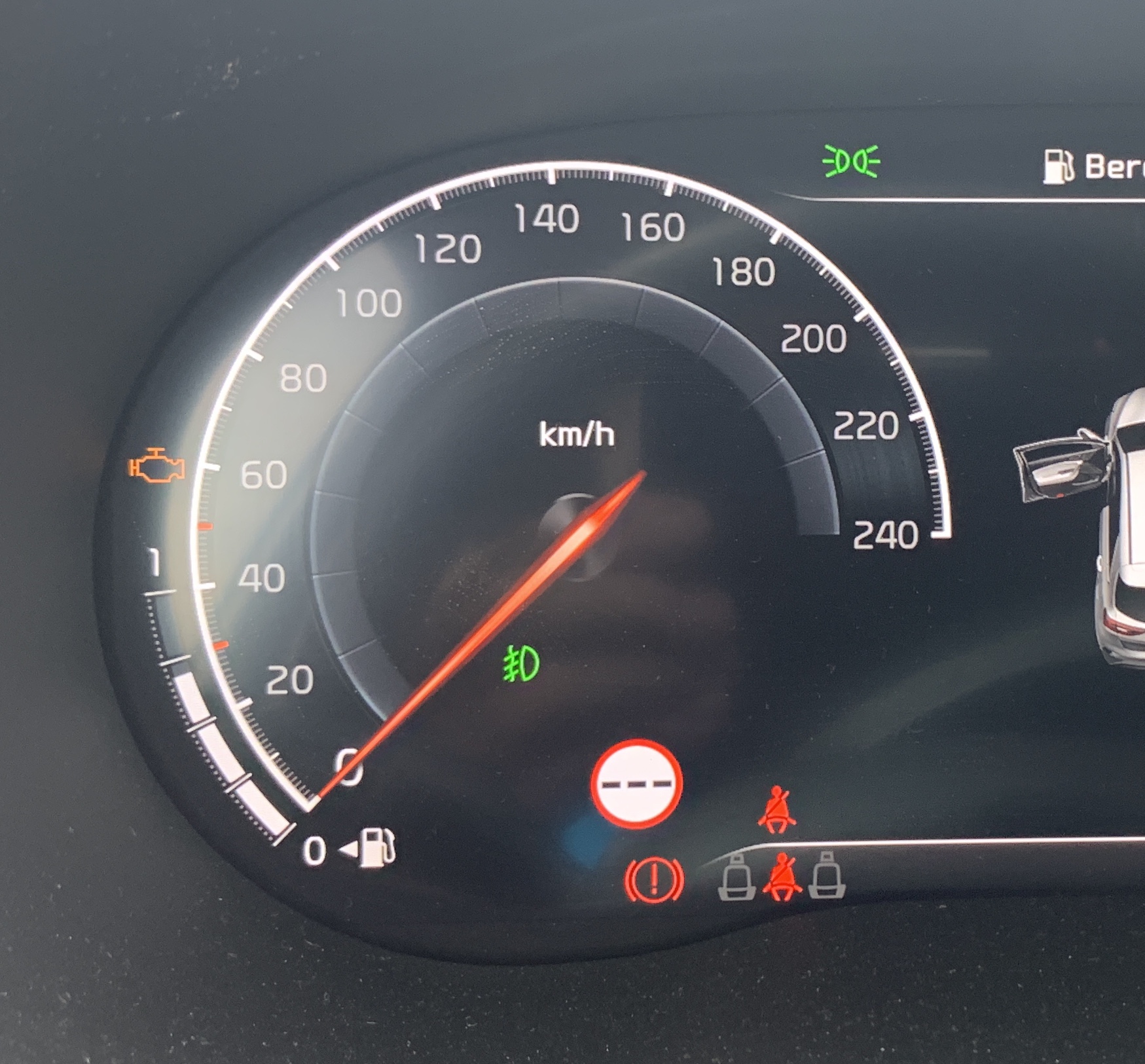 Uiteraard kwam het geluid weer terug, na Rijeka, zo’n 15 km voor de camping, die tussen 1 en 3 dicht is, en we hadden nog een 20 minuten de tijd voor het 1 uur was. Toch nog even gestopt, en nu zag ik dat het oranje Motorstoring lampje brandde. Ook was het lampje van het automatisch stoppen/starten lampje aan het knipperen (maar of die laatste ertoe doet, weet ik nog niet). Dus toch even het dikke boek erop nagelezen, maar het oranje motorlampje is oranje en niet rood, en veel meer dan naar een garage rijden kan je dan niet doen. Dus, besloten eerst maar naar de camping te rijden.