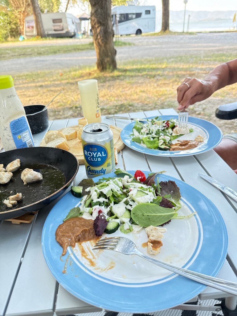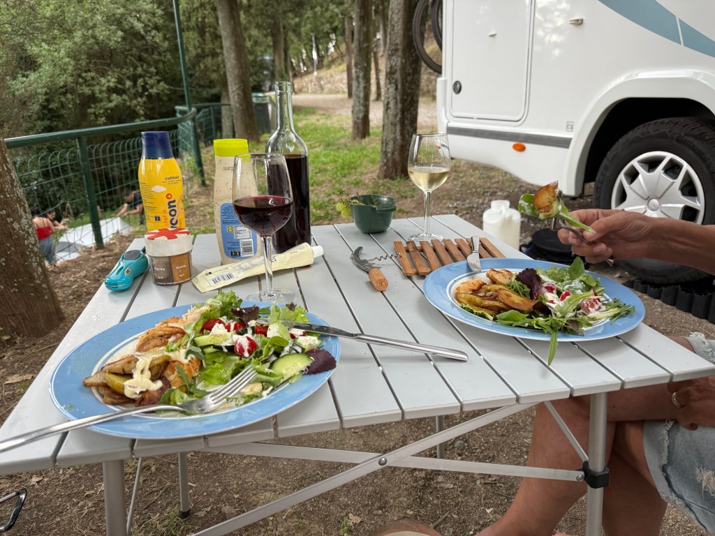 Voor het eten haalde ik een pizza op de camping en maakte C nog een bakje sla pp.