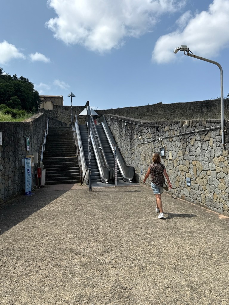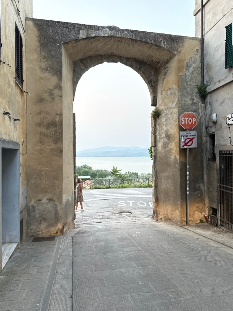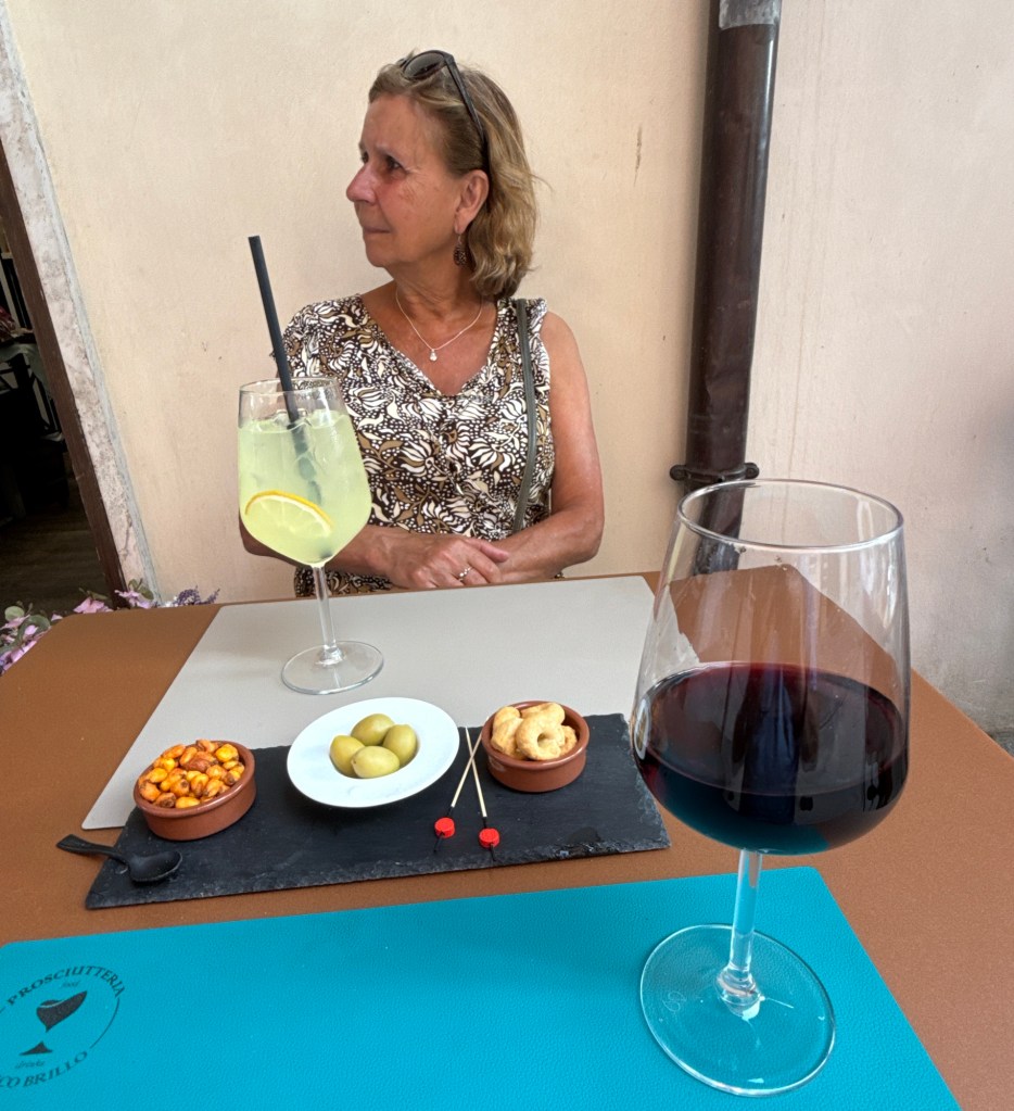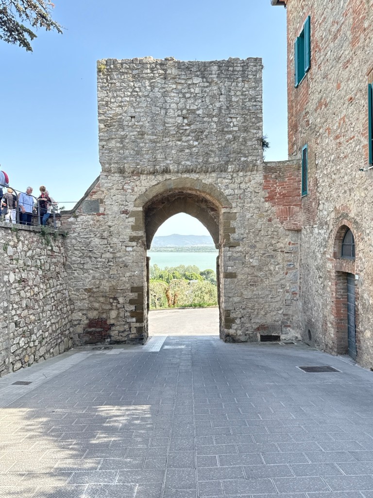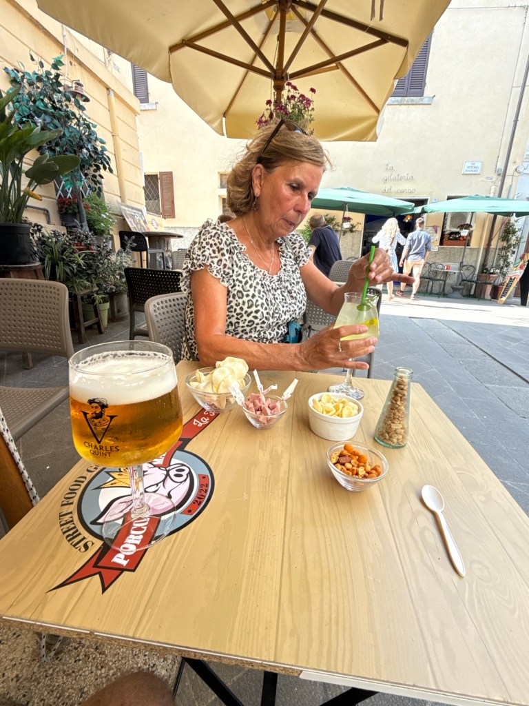 Zo tegen 12 waren we bij een P voor campers bij Montepulciano. Het was even zoeken waar te betalen. Het goedkoopste was €5 voor 6 uur. Vrolijk huppelden we naar boven naar de stad.