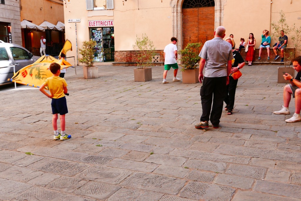 Dus al snel liepen we langs de winkels, Duomo en het beroemde plein van Siena. Een ice-koffie voor C en iets met limoncello (citroensap) voor mij. Bij de dom bleven we een tijdje mensen kijken.