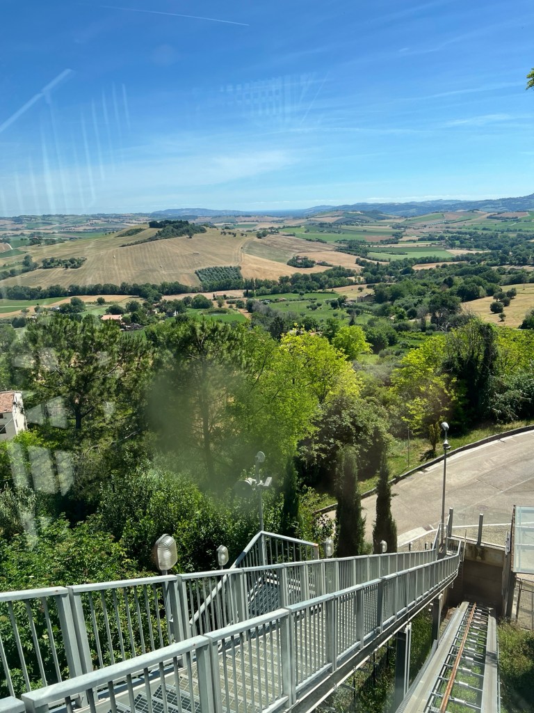 Treia zag er zeker mooi uit van ver. Vanaf een parkeerplaats konden we met een lift naar het hoger gelegen stadje.
