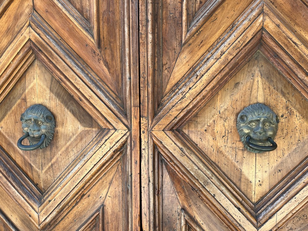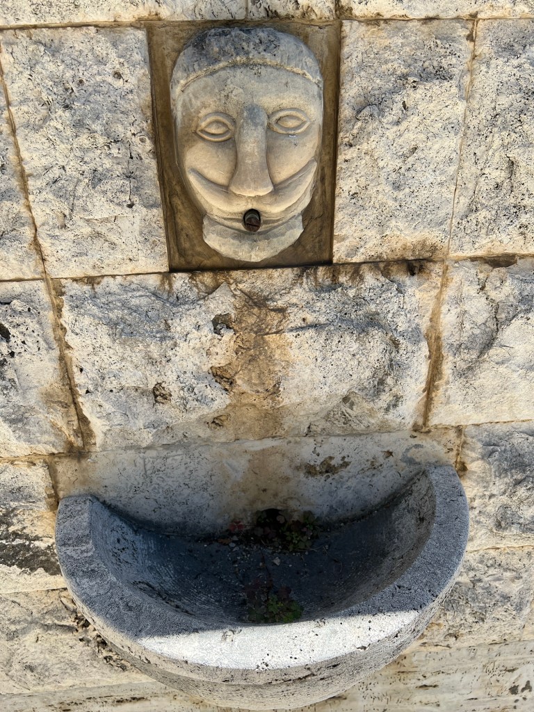 Mooi pleintje, met fontein. Zelfde plein. Ook veel deurkloppers. Hier apenkoppen. En mooie uitzichten.