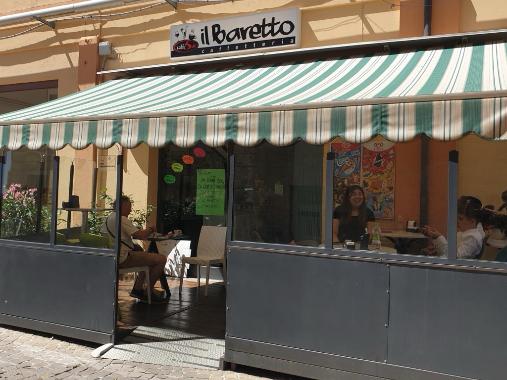 Dus nu we naar rechts gingen zaten we bijna gelijk in het centrum van Adriatica Alba. Meer strandtenten, meer winkels en ook wel wat drukker.