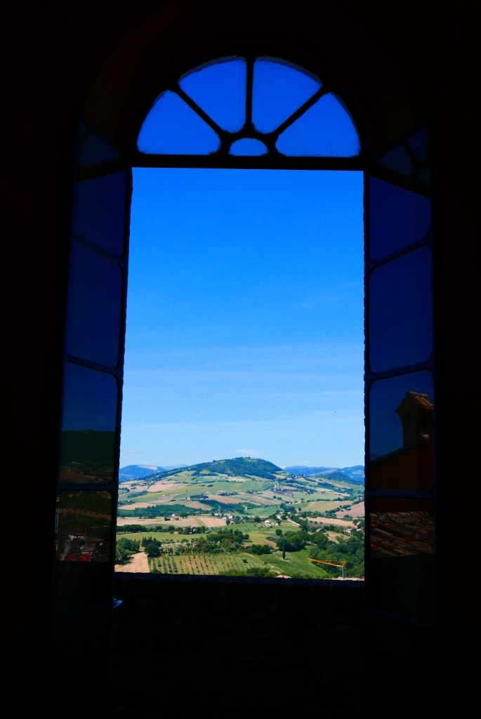 We zijn niet in de herkansing gegaan. Het was wat koeler vandaag. Wat wilde we bewijzen? Dus alles in gang voor een andere bestemming voor vandaag, en alvast kijken voor de volgende dagen. Cingoli voor vandaag. Ook een middeleeuws stadje. Zo’n 600 meter hoog en wel ‘het balkon van Le Marche’ genoemd.
