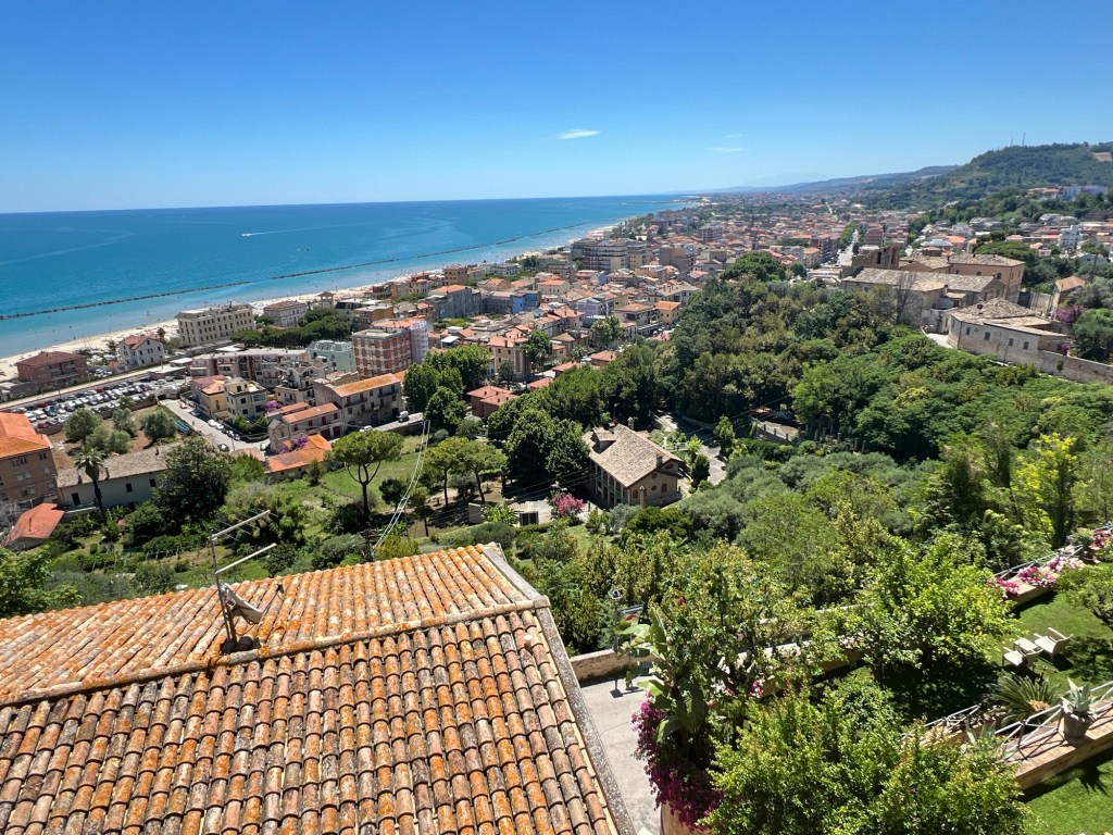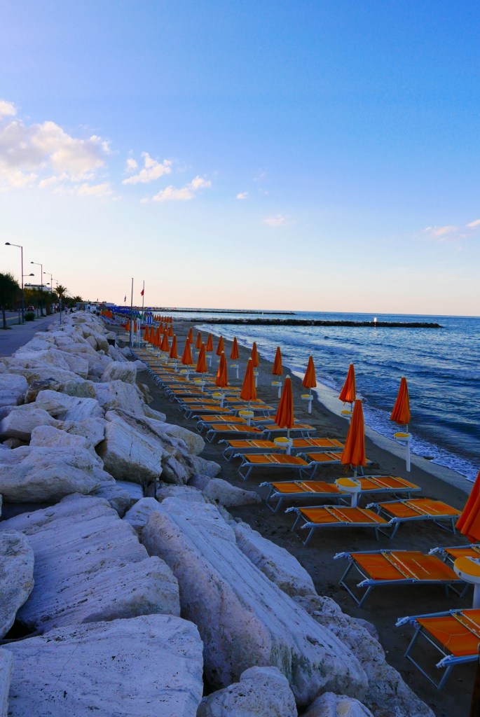 Na Treia reden we naar Martinsicuro. Naar een camping aan zee, niet naast een spoorbaan. Via de CampingCard app had ik een mailtje gestuurd. Om zeker te weten dat er plaats is. De camping was nog 100 km rijden van Treia.
