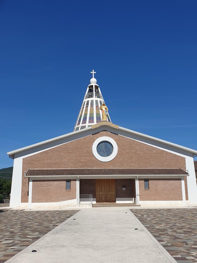 Onderweg kwamen we zomaar een moderne kerk tegen. Niet uit de 12de of 13 de eeuw. Apart.