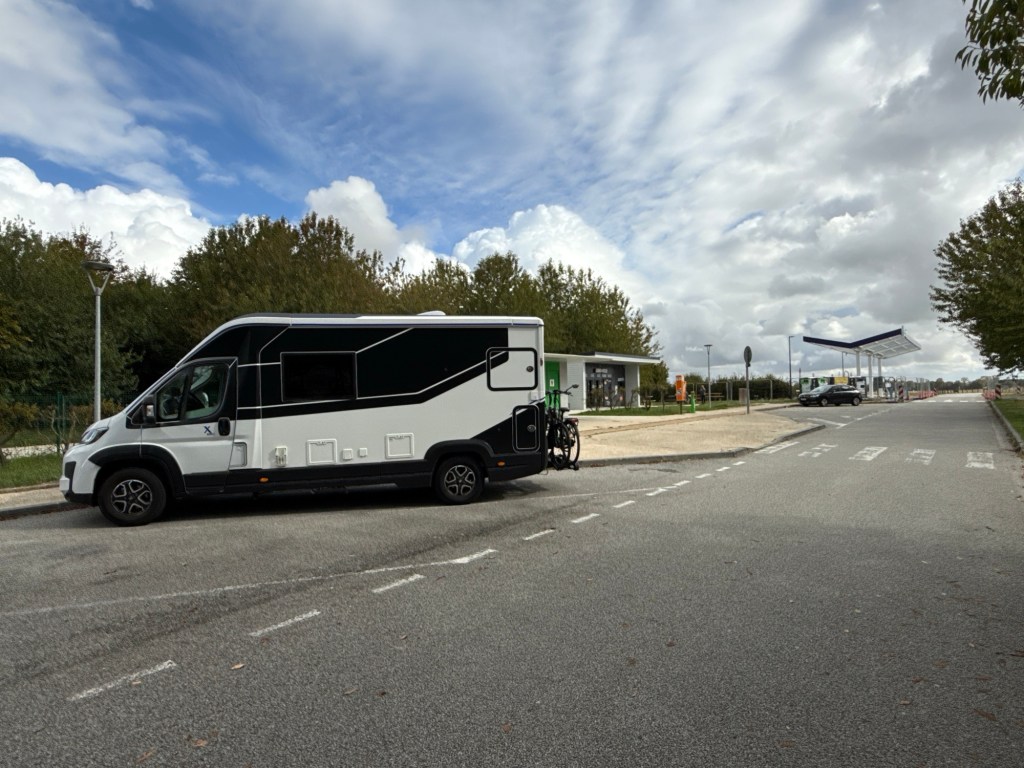 Bordeaux, Angoulême, Poitiers, Angers en Le Mans. A-wegen, N- en D-wegen. Zo tegen 5 waren we er. De CP met 9 plaatsen was vol. Het parkeerterrein ernaast leek een plek voor ons te hebben. Maar voelde niet 100% ok.