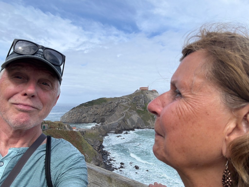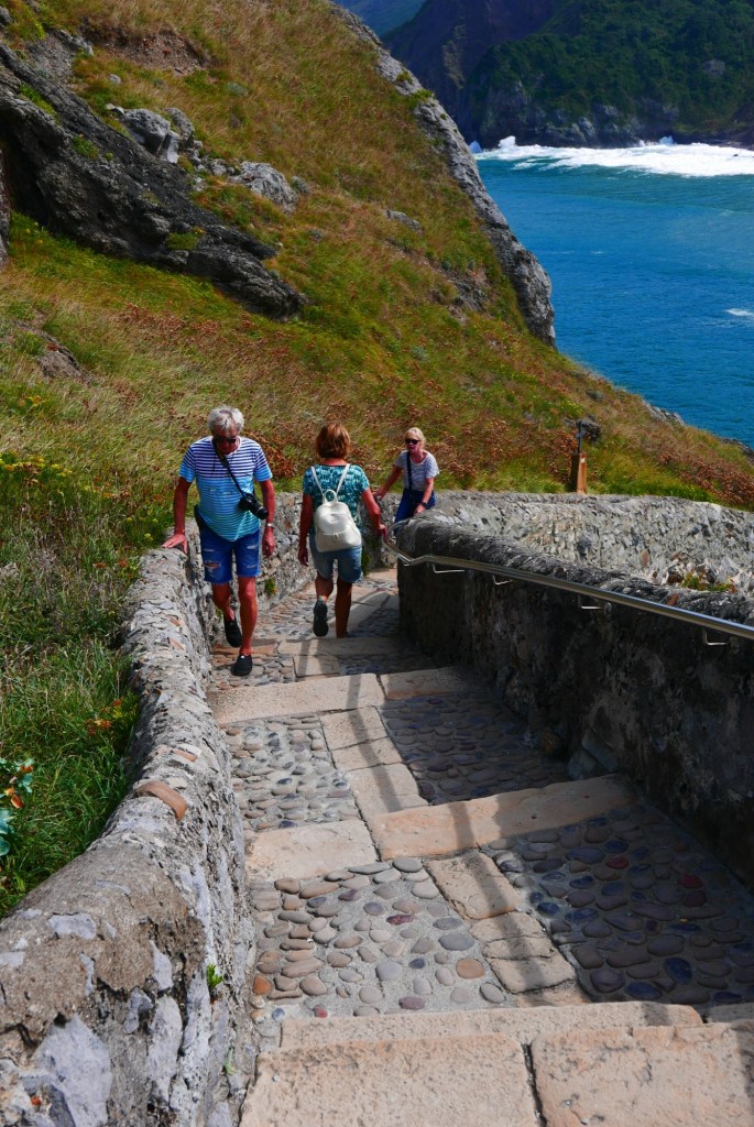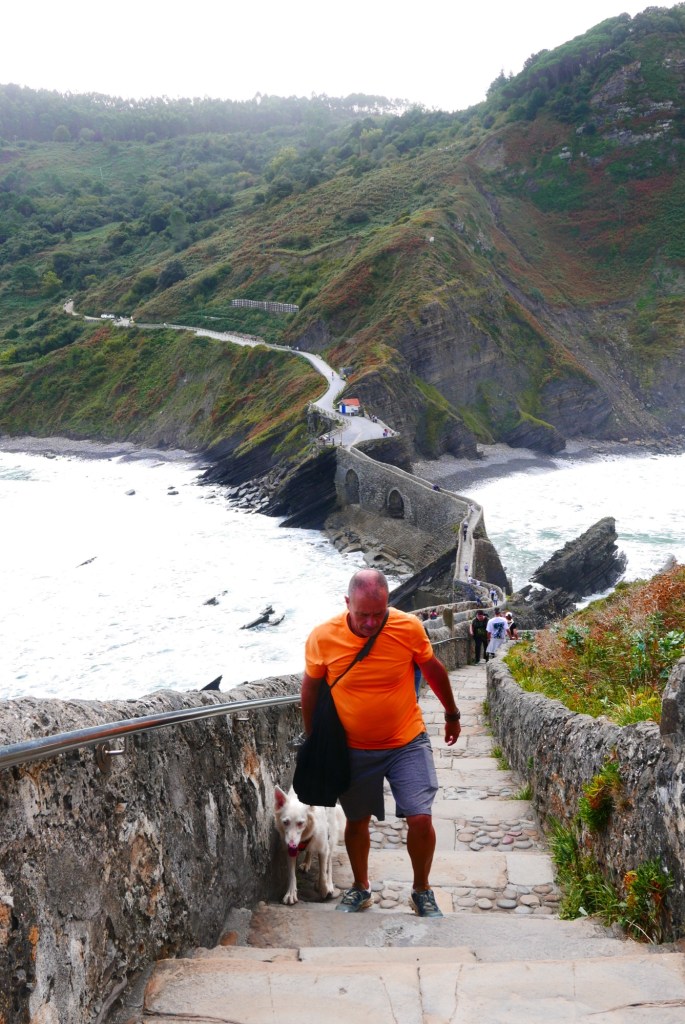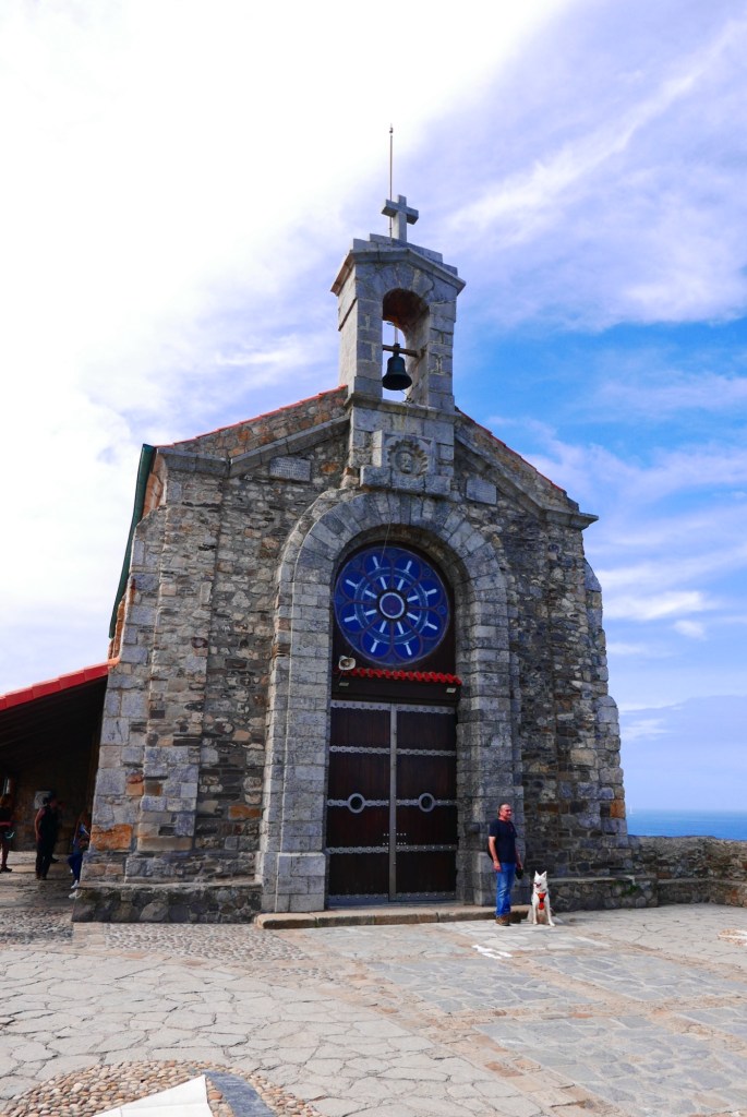 Niet elk selfie lukt ok. Gaztelugatxe op de achtergrond. Vanaf hier de trap op. Buiten de kluizenaar, doet de kerk ook (weer) mee. Vanaf de trap zicht naar de wal. Het afdak van de kluizenaar. En de kapel van de kerk, kip en ei…En de terugtocht is begonnen.