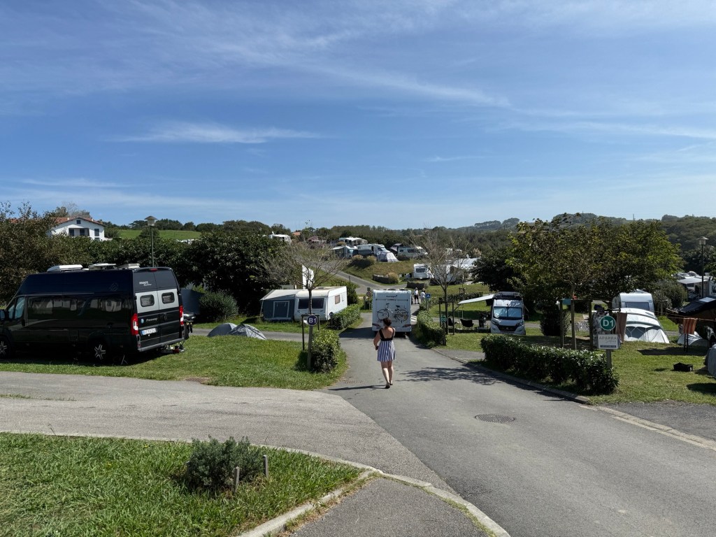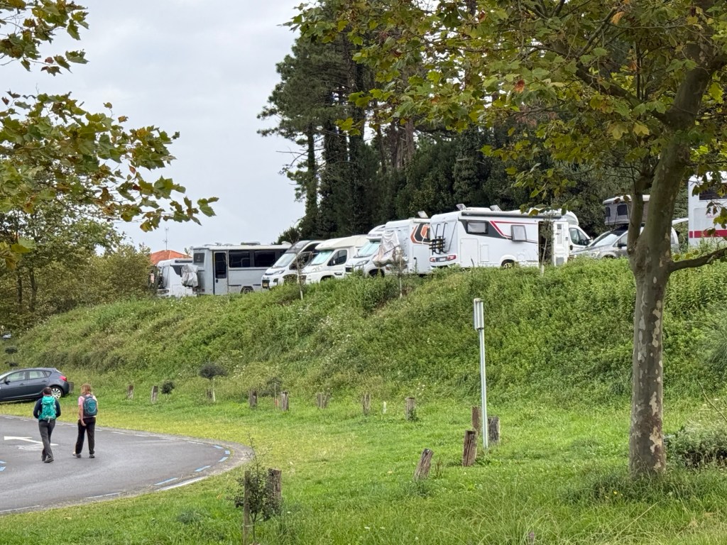 Snel douchen en ontbijten, snelle (oplos)koffie. Alles vast en zeker, langs de ontzorgingsplaats. Grijs en zwart water weg en voor de zekerheid drinkwater aanvullen. Half negen reden we van de camping af. Iets voor half 10 voor de deur bij de CP in Bilbao. De receptie viel mee. Ze was in haar eentje, mensen komen, mensen gaan, toilet sleutel wordt gehaald en weer terug. 2 toiletten voor 73 campers, maar de meesten hebben een eigen toilet. In een kwartiertje hadden we een plek.