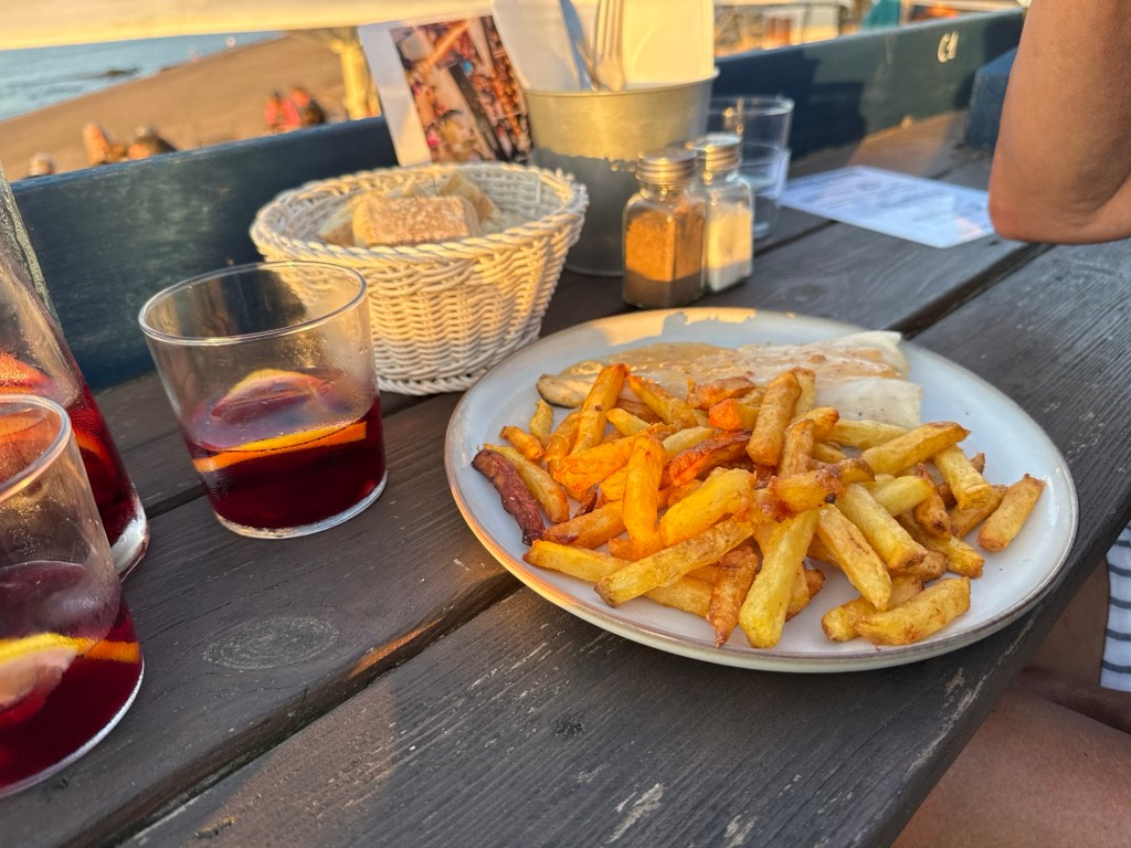 Het werd een heek fillet voor C en een Smash burger met friet voor mij. Een halve karaf Sangria voor de smering.