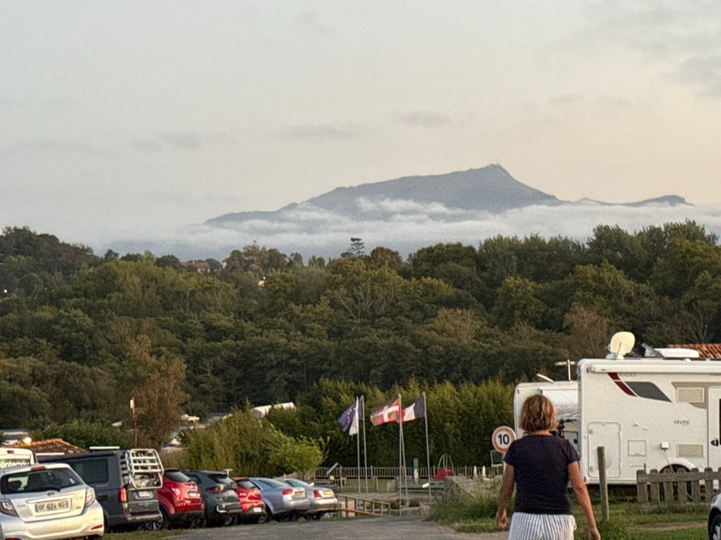 Zachtjes, met aandrang werd ik wakker (gemaakt). We wilden bijtijds weg om een goede kans te maken op een plek in Bilbao. Het was nog niet echt licht, maar de zon had zich al aangekondigd. rond 7:45.