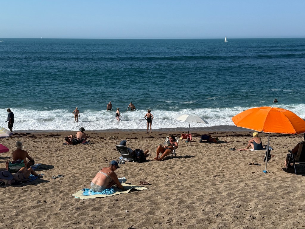 Even bijkomen bij de camper, en toen verkleden we ons voor het strand. Alhoewel de zon goed aanwezig was, was de wind dat ook. De zee was aardig fris, dus zwemmen werd het niet. Tijdje boekreader lezen en weer terug naar de camper. Omkleden en naar een barretje drankje doen en spelletje kaart.