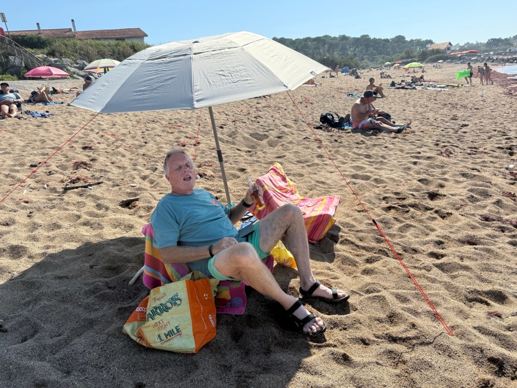 Lekker meer zaden stokbrood van de super ging schoon op. Na de lunch effe hangen en daarna toch maar met stoeltjes en parasol naar zee. Voor een doordeweekse donderdag was het best druk.