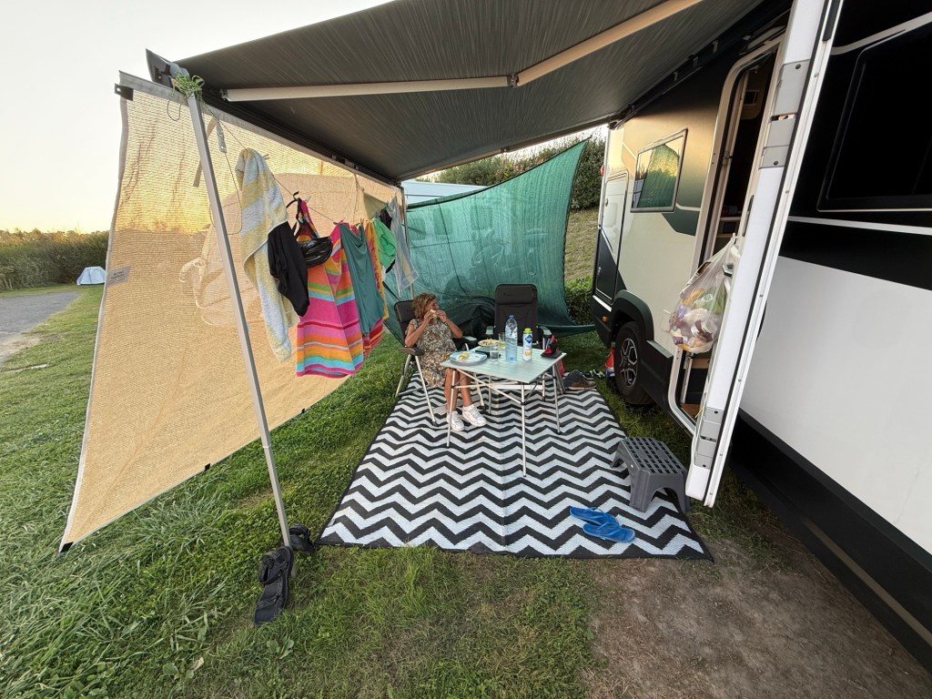 Zo net na 12 uur kwamen we aan bij Camping Tamaris, niet gereserveerd, en bordje Complet. Plus van 12 tot 15?uur lunchpauze. ‘Gelukkig’ bevestigde een medewerker dat ze echt Vol zijn. Plan B… eh… oja er is nog een andere CampingCard camping, zelfs iets goedkoper. Iets andere lokatie, zo’n kleine 2 km terug, langs de kust.