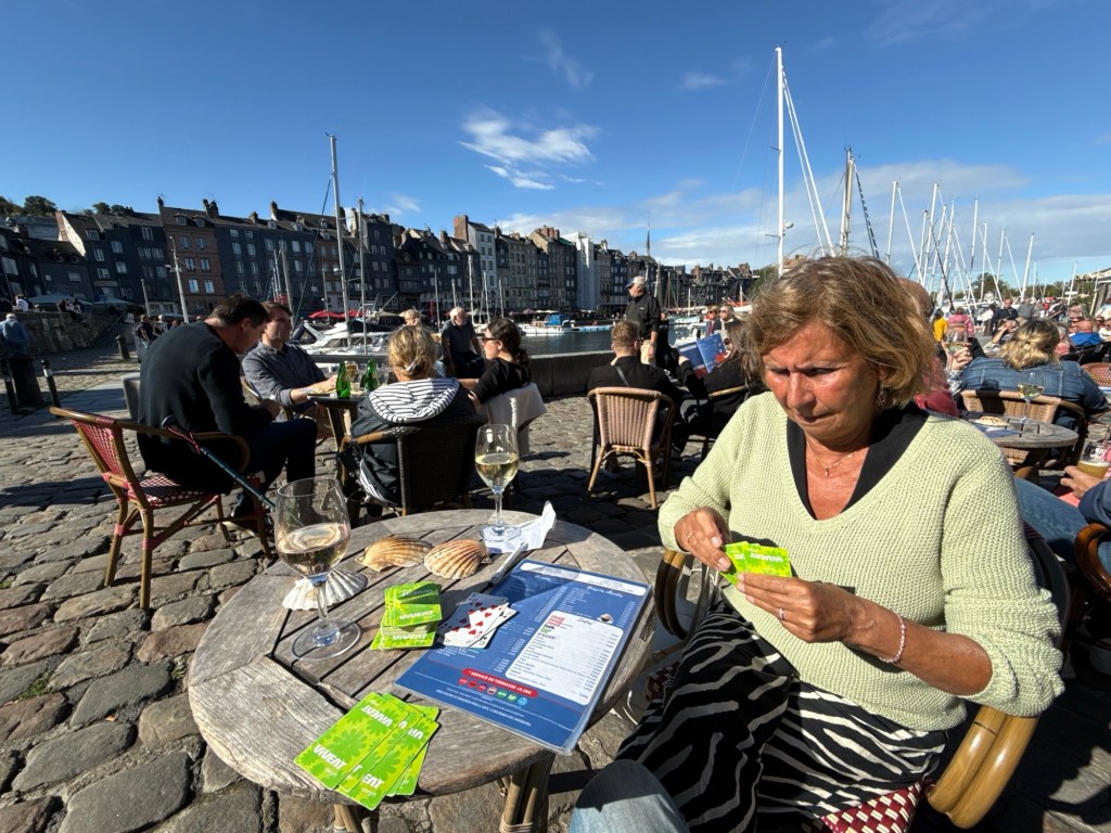 Met een bonus zonnige morgen startte de dag. Heerlijk geslapen weer. Weer word wat wisselvallig vandaag. We vertrekken rond 11 uur richting een Huttopia camping in de hierboven genoemde plaats. Tot die tijd wandelde we nog eens in Honfleur met een heerlijk zonnetje. Lange broek en trui, dat dan weer wel. Bij het ontbijt raam achter C dicht, de zon brandde anders m’n ogen er uit.