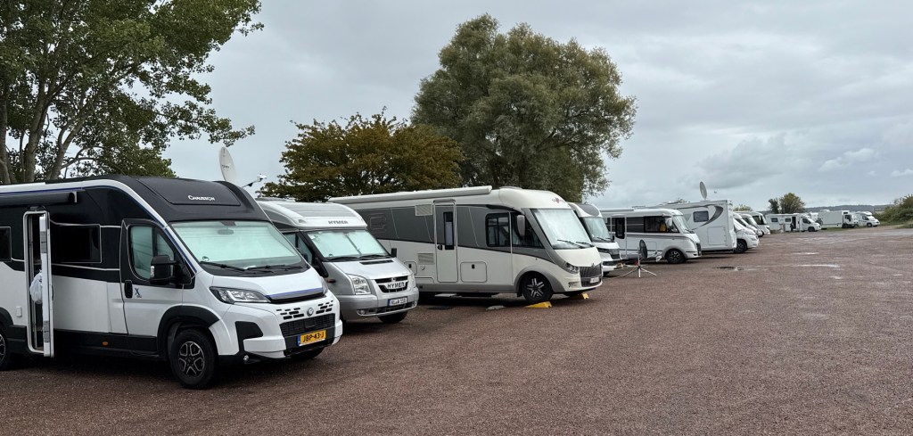Dit is het voor vandaag. Morgen tegen de middag bij Normandië. Waarschijnlijk ook een CP. Zijn we ooit ‘weggejaagd’ met honkbalknuppels. We waren met de caravan toen, wilden een paar uurtjes parkeren. Niet dus. Even later hadden we toen een beter plekje gratis. Maar nu met de camper…