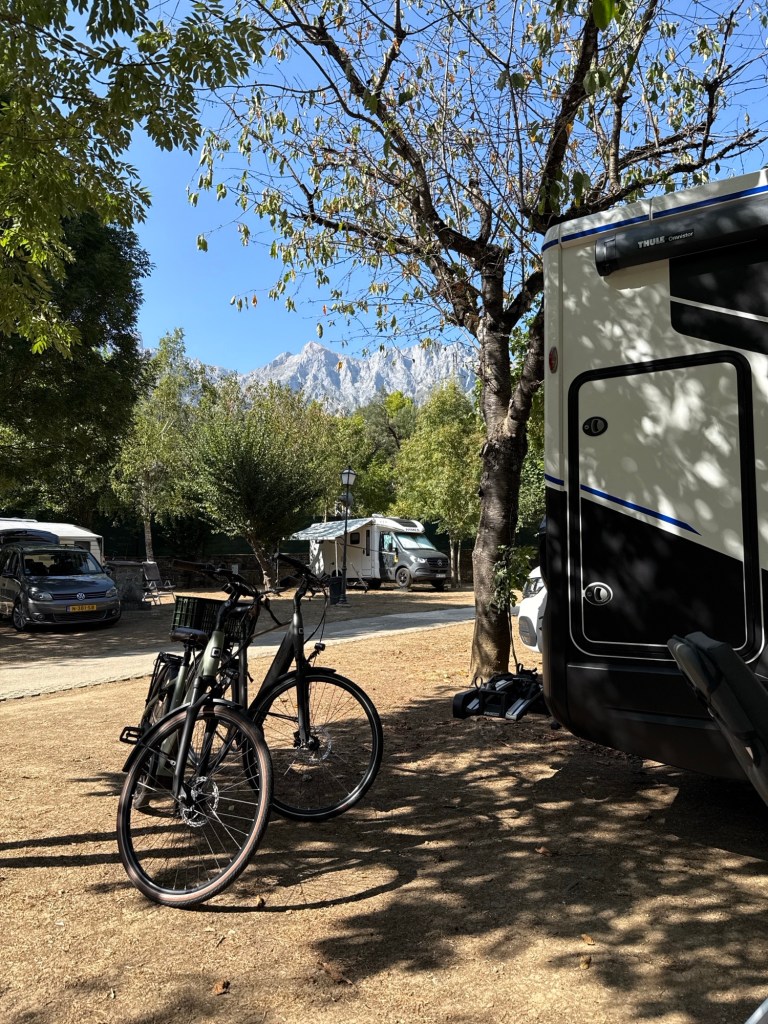 Ons plekje, de bomen zorgen voor schaduw over bijna de gehele camping.