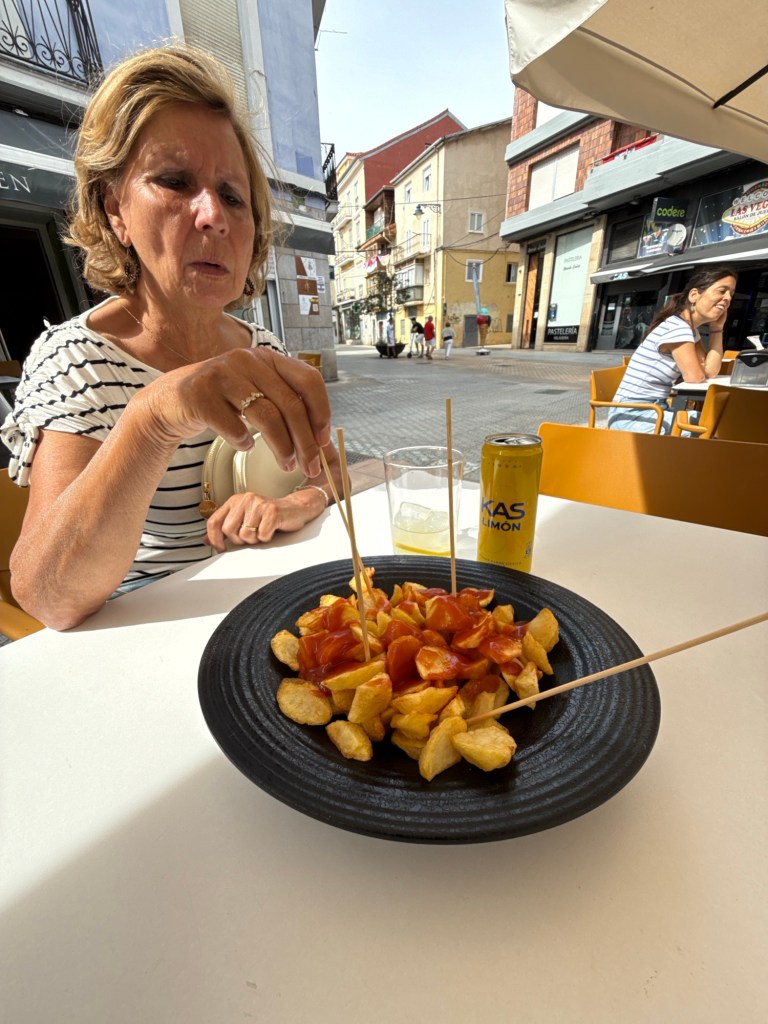 Maar ik had al voor patatas bravo (pikant) en Aioli gekozen. Wijntje en zero cola.