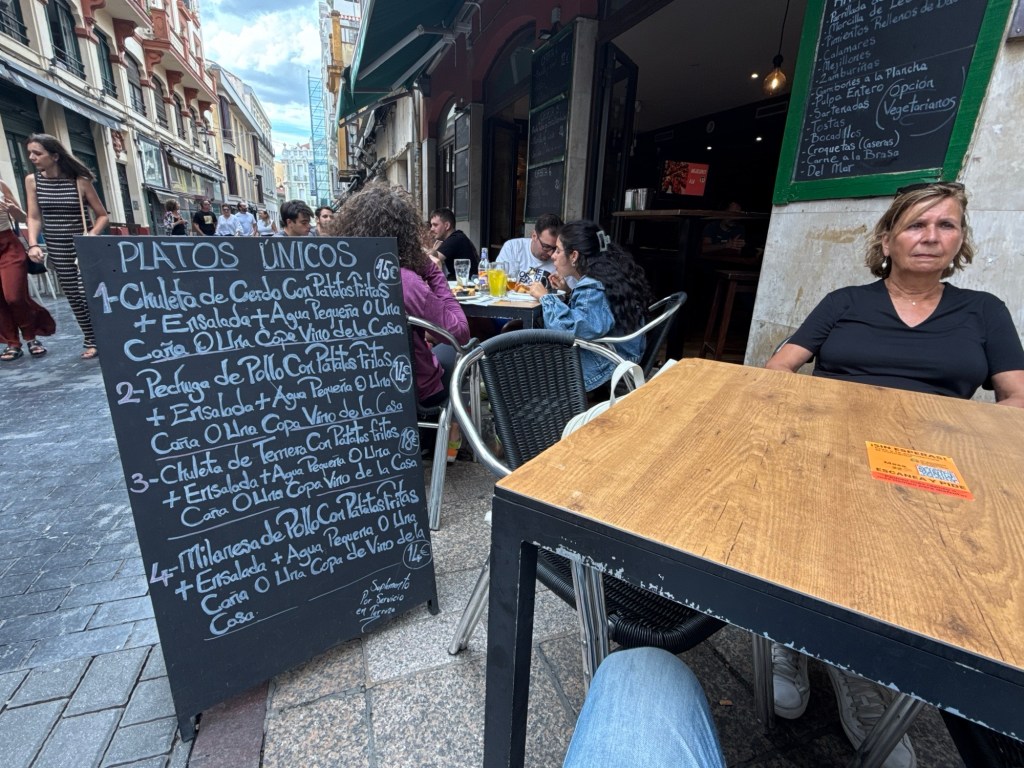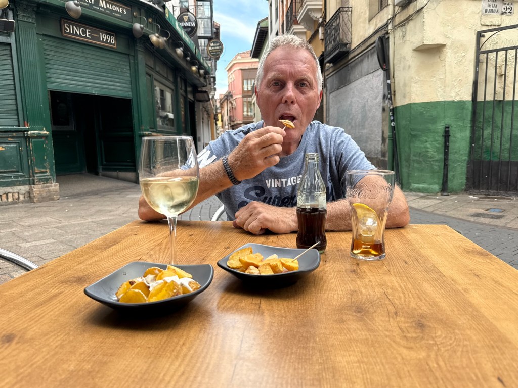 Bij het afrekenen was de hongerklop over. Blijkbaar waren de patatas borrelhapjes, we betaalden alleen de drankjes die nog eens heel schappelijk geprijsd waren.