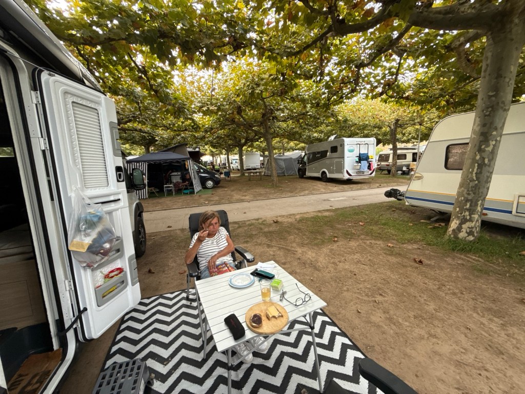 Na het ontzorgen van de camper en het bijladen van drinkwater, verlieten we de CP richting Camping La Paz. Ik had een tussenstop toegevoegd bij een relatief goedkoop tankstation (dank ANWB app). En binnen het uur waren we bij de camping. Weer was (nog) droog. Plek was snel geregeld. Eerst voor één nacht, maar we hebben een nacht bijgeboekt.