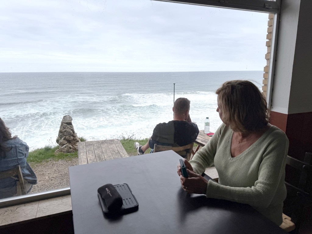 Voor het eten eerst even de Bold kijken in het cafetaria. Met ook nog eens mooi uitzicht op zee.