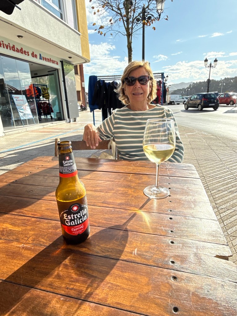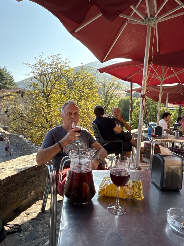 We bezochten nog een supermarkt voor een paar dingetjes. Daarna liepen we naar een cafeetje bij de ‘grachten’ van Potes. Laten we een sangria nemen. Een beker voor 2 personen, zeg maar een vaas. Dikke liter.
