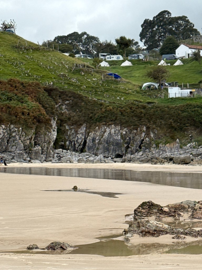 Geen haast vanochtend, droog, volgende plaats, Camping La Paz is zo’n 45 km verder. Net voorbij Llanes, bij playa de Vidiago.