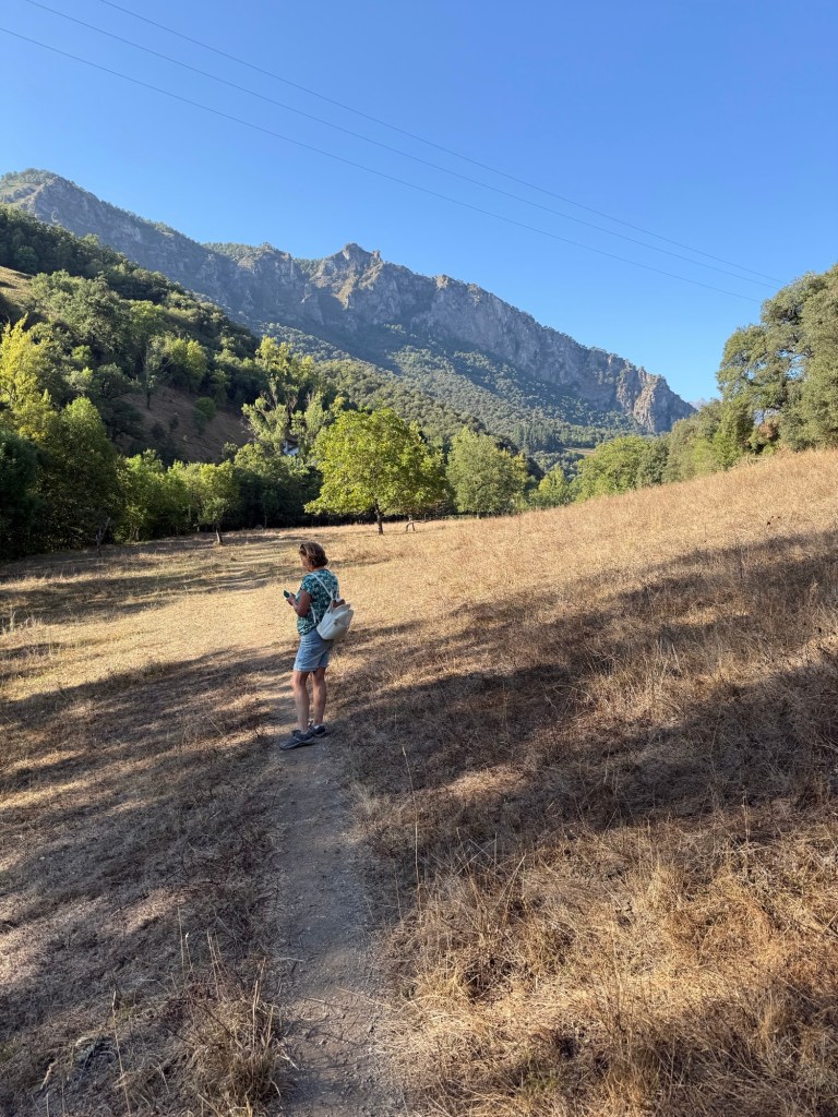 Boven is het frisser en waai je uit je hemd. Er zijn, buiten wandelingen door de Picos naar bv hutten, 2 andere opties. 14 km naar beneden, 4 uur lopen, maar we hebben retourtjes, 1 uur lopen naar hotel Alive, en weer terug. Beide wilden we gister eigenlijk niet. Keek C wat tegenop, maar uiteindelijk werd het Alive.