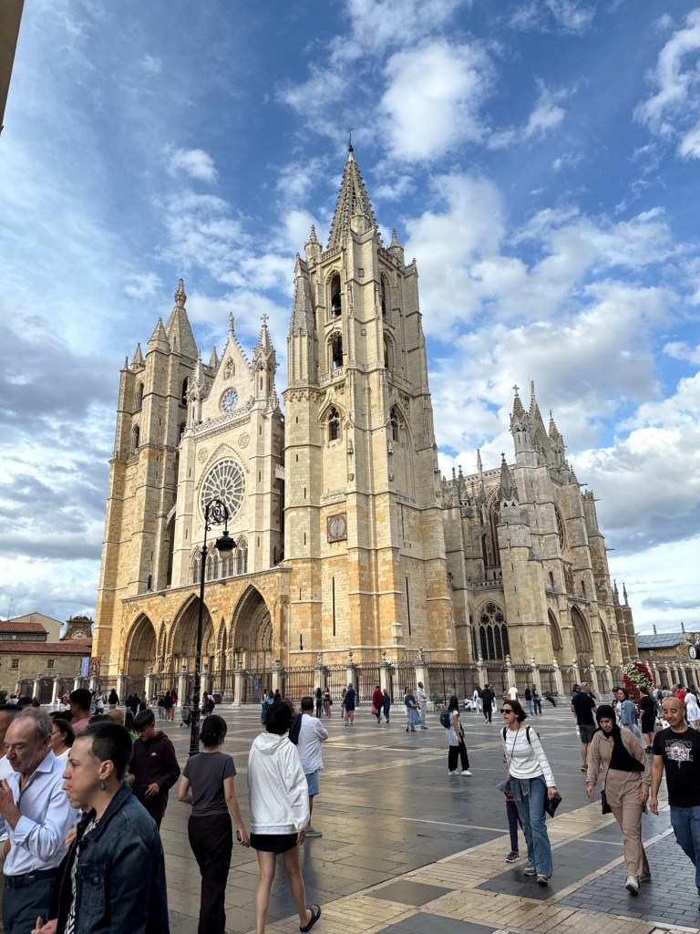 Na een 2 uur rijden kwamen we bij Leon. Vlakbij een winkelcentrum met o.a. een Aldi, alles dicht op zondag, was de camperplaats. Ruimte voor 26 campers, gefaciliteerd door de gemeente. En nog plaatsen vrij.