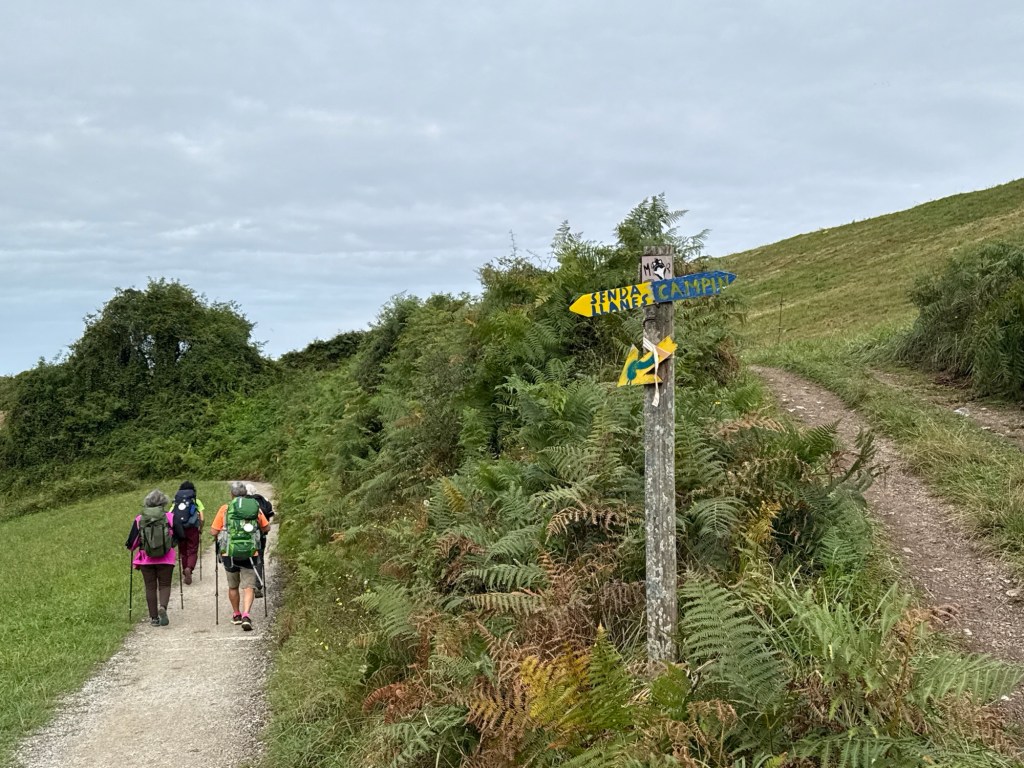 Nu liepen we met de Compostela gangers op, tot deze splitsing. Bij de camper was het alweer bijna lunchtijd.