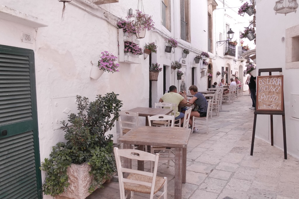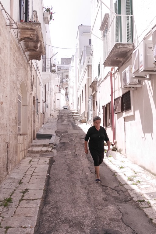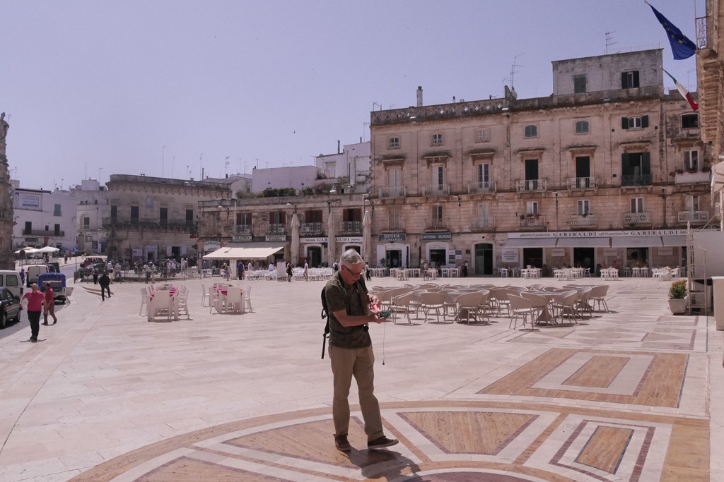 Na geluncht te hebben en even wat gelezen te hebben besloten we op de fiets naar een stadje te gaan (San Vite det Normanni) waar volgens de camping een ‘grote’ supermercado zou zijn. Een 7 km verderop. Nou dat werden er 9, deels heuvel op, en op het warmst van de dag, maar het viel eigenlijk wel mee. Het zoeken naar de supermarkt duurde even. Er waren pijlen/borden, maar die liepen dood, in het dorp vonden we weer een nieuw spoor. Een flinke, de grootste tot nu toe sinds we in Italië zijn, supermarkt. Heerlijk koel daarom blijf je er langer, buiten liep het weer in de 30 graden.