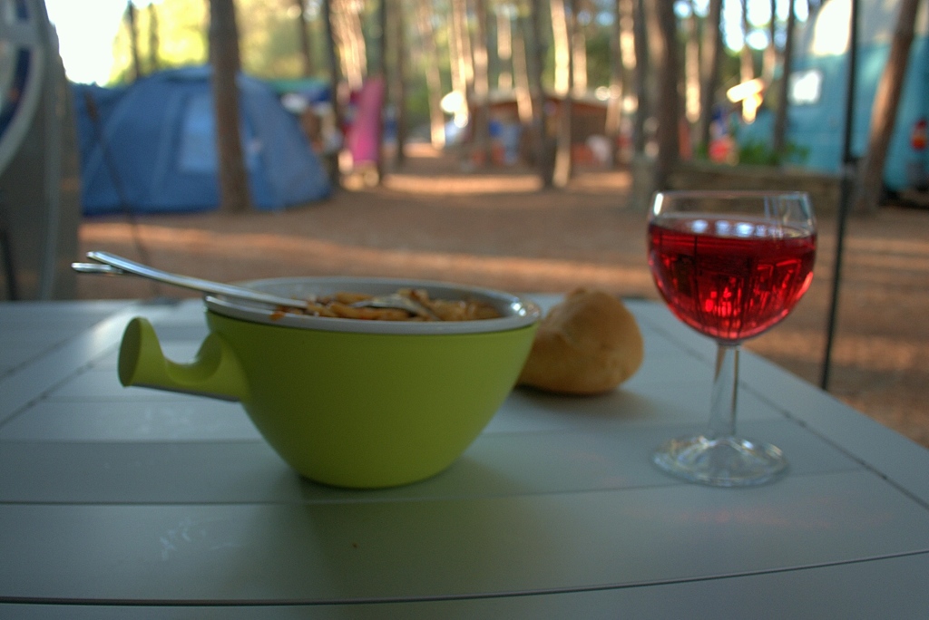 Voor het avondeten haalden we benodigdheden bij de Conad. Het werd salade met stokbrood en gebraden kippenpoten.