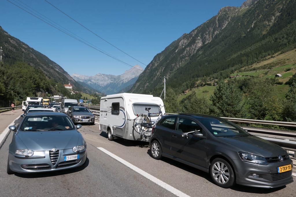 Al vrij snel waren er borden met info over de Gothard tunnel, 3 km file, dat is nog wel te behappen,