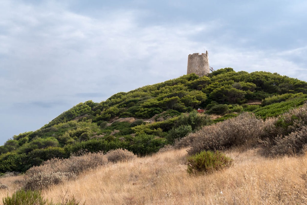 Na een plekje gevonden te hebben stond de Feeling snel op z’n plek en werd het tijd om eens te gaan kijken waar ik nu weer terechtgekomen was. Het strandje had ik dus al snel gevonden. De Toren van Chia, en het  blijken  hier op Sardinië trouwens spaanse torens te zijn, in tegenstelling van de torens op Corsica die Genuaans zijn, staat bovenop een heuveltje, meter of 40 hoog.